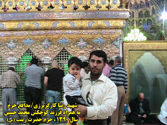 پدر ، مادر ، همسر و فرزندان شهید رضا کارگربرزی/مدافع حرم ، چند روزی است که مهمان حضرت زینب س هستند در سوریه. رفتن تا دل به دلِ صبور زینب کبری س بدهند و بگویند که در حفظ حریم دختر زهرای مرضیه از دادن هیچ چیزی دریغ نخواهند کرد و خون شهیدشان اندک تحفه ای بود که در راه قافله سالار اسرای کربلا میشد داد.رفته اند تا به رقیه س بگویند که ای بی بی سه ساله، اگر نبوده ایم در عاشورا سال 61 ، اما اکنون در دفاع از حریم شما همه چیزمان را خواهیم داد. رفته اند تا ببینند که کدامین نقطه به نام مشهد فرزندشان ثبت شده است. رفته اند که اهالی مظلوم ومسلمان زینبیه ببینند که هستند مادران و فرزندانی که عزیزشان را برای دفاع از مظلوم و دفاع از اسلام ناب محمدی فرسنگها دورتر از خانه و کاشانه شان فرستاده اند تا دل رسول خدا و اهل بیت آن حضرت علی الخصوص دل آن بانویی که زینت پدر واقع شد از آنها شاد شود