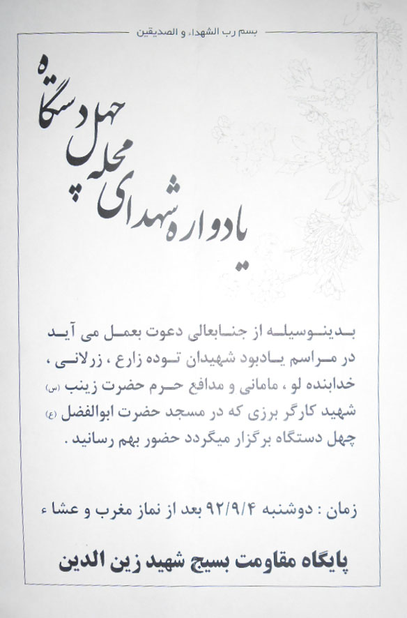 دلم تاب نمی آورد که از این ها نگویم. از مسجد اداره تان که در کنار آن تابلوی شهدا عکس رسول هم رویش قرار گرفت.